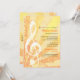 Se a garota do Bat Mitzvah é sobre música, então mostre isso com esse convite impressionante do Bat Mitzvah. Uma clave tripla cobre feixes amarelos-laranja-claros com espirros superimprimidos. As notas de música flutam pelo topo do convite. O inverso tem uma imagem semelhante, mas com um clave de baixo. Adicione qualquer informação adicional ao reverso ou exclua o bloco de texto para deixá-lo vazio. Disponível em cores alternativas com produtos e opções correspondentes para o Bar Mitzvah.
