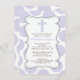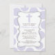 O convite para o Batismo Sagrado, bonito, com uma cruz roxa colocada num quadro na moda, num fundo bolinhas roxo popular. Sacudir nosso convite para o batismo moderno para encontrar uma polca roxa e branca correspondente pontilhada de volta. Perfeito para um batismo ou batizado de meninas contemporâneas. Disponível em nosso compro em uma variedade de cores para um bebê ou uma menina.