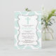 Um convite para o Batismo Sagrado, bonito, com uma cruz azul sobre um quadro na moda de um fundo de bolinhas verde-claro. Sacudir nosso convite para o batismo moderno para encontrar uma polca verde clara e branca correspondente. Perfeito para um batismo de meninos contemporâneos ou batismo de meninas ou batismo. Disponível em nosso compro em uma variedade de cores para um bebê ou uma menina.