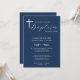 Convocação para o Batismo Azul do Script Elegante Moderno. Personalize com o nome do bebê, a data do batismo, a localização da igreja, a morada da família e a resposta RSVP.