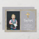 Simples, elegante, Dourado e Marinho, batismo e batismo. Enviar para a família e amigos com esta carta religiosa moderna personalizada. Ele apresenta um script "Baptism" com letra de mão, em torno de uma estrutura dupla falsa de folha de ouro e um confete com brilho dourado sobre o fundo da cinza. Este cartões de agradecimentos fotográfico simples moderno também será perfeito para batismo / batizante / cerimônia de nomeação / confirmação e cartões de agradecimentos de comunhão sagrado para garotos ou meninas. 3354