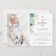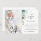 Cartão de Convite Batismo com Flores Azuis Dusty e Folhas.
