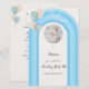 Convide seus entes queridos para celebrar o batismo especial do seu filho com este Menu personalizável, maravilhosamente projetado. O elegante fundo azul claro e marinho arquitetado simboliza fé e proteção, enquanto o bege suave e os balões de cinza adicionam um toque de calor e celebração. O fotograma circular centrado permite um toque pessoal, fazer este convite como uma merenda prezada. A combinação da escrita clássica e das fontes serif melhora o eterno e a sensação graciosa dessa ocasião religiosa. Perfeito para batismos, batizados ou cerimônias de dedicação de meninos. B012