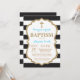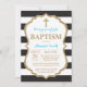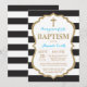 Azul Preto e Dourado Convite para Batismo Glitter. Batismo Menino. Primeira comunicação. Cristo. Dedicação Infantil. Black and White Stripes. Para mais personalização, clique no botão "Personalizar" e use nossa ferramenta de design para modificar este modelo.