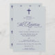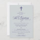 Celebrar um marco sagrado com este belamente desenhado convite batismo que incorpora tradição e elegância. Colocado sobre um fundo azul suave, um Marinho escuro azul corta o design e destaca a mensagem sentida