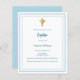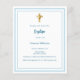 Um fundo branco, decorado com um quadro azul claro, e um ouro cruza Personalize e adicione o nome e os detalhes. 1 folha = 1 convite impresso de borda a borda.
