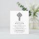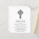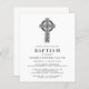 Um belo convite para o batismo, com orçamento favorável, com ilustração de uma cruz celta e uma simples tipografia moderna.
