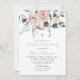Um convite elegante de batismo/batizante com delicados sotaques florais cor-de-rosa e toques de verde. Perfeito por celebrar esta ocasião especial com charme de eterno.