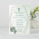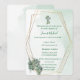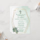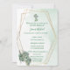 Celebre o dia sagrado do seu filho com este elegante convite batismo, com um fundo verde-aquarela, uma estrutura geométrica dourada e uma delicada cruz com os florais. Perfeito para batismos de meninos ou meninas, batizados ou cerimônias sagradas. Totalmente personalizável com nome, data, igreja e detalhes de recepção.