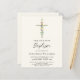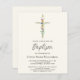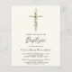 Este convite para Baptismos, orçado em na moda, é decorado com uma cruz floral de flor silvestre e tipografia de script em fundo de creme mole. Facilmente personalizável. À medida que criamos nossos gráficos, você não encontrará essas flores silvestres em nenhum outro lugar. Original Watercolor © Michele Davies.