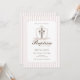 Celebrar o batismo da sua filha com este elegante convite riscado a rosa com uma cruz cristã numa crista e sotaques femininos suaves. Uma escolha eterno para o batismo infantil ou católico. Totalmente personalizável.