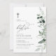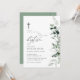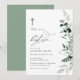 cartão de convite para batismo moderno de aquarela verde. O texto e as cores podem ser editados.