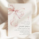 Mínimo convite batismo que apresenta um elegante arco rosa e uma tipografia elegante.