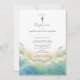 Estes convites de batismo de praia apresentam uma fronteira inferior de ondas oceânicas. Use os campos modelo para adicionar seus detalhes personalizados, incluindo os nomes dos padrinhos. Solicite cartões impressos on-line ou convites imprimíveis. Uma escolha elegante para temas costeiros. Para ver mais designs como esta, visite www.zazzle.com/dotellabelle Arte a aquarela exclusiva e design por Victoria Grigaliunas do Do Tell A Belle.