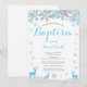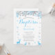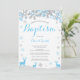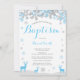 Convite De Batismo Para O Rapaz De Veado De Inverno. Floco de neve branco e azul. Batismo Rapaz.Primeira Comunhão. Natal. Dedicação de Crianças. Fundo Branco.