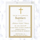 Este convite simples e elegante para o batismo apresenta um quadro duplo de ouro, uma cruz de ouro e os detalhes do evento abaixo. Há um campo editável no verso para obter informações adicionais. O texto é editável, portanto, vá em frente e altere os detalhes, assim como o estilo, o tamanho e a cor da fonte. Este convite editável pode ser usado para qualquer evento cristão. Aproveite seu novo convite para batismo Dourado editável!