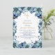 Convite de batismo de flor azul. Quadro floral azul elegante com cartão de convite para batismo neutro em questões de gênero. Que este batismo marque o início da jornada espiritual do seu filho através da fé e do amor.