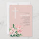 Celebre o batismo do seu filho com um convite floral rosa e espantoso. O design apresenta lindos lírios cor-de-água, cor-de-rosa, e uma elegante cruz branca, colocada contra um fundo de pincel suave. Use as ferramentas de design para personalizar o texto e as fontes. Também disponível como download digital.
