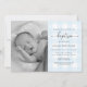 Convite para Batismo Fotográfico de Gingham Azul