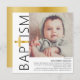 Convide seus amigos e família para o batismo/batismo de seu filho ou filha com estes modernos convites de fotos minimalistas. As cartas apresentam sua fotografia favorita, uma cruz de ouro sobre o T no batismo e um modelo de convite moderno que é fácil de personalizar. Todos os estilos de fonte podem ser alterados clicando no link personalizar depois de personalizar.