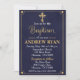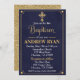 Um convite simples e elegante para o batismo do seu filho em marinho e falsa brilho de ouro!