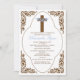 Comece o seu evento à direita com o nosso elegante quadro de antiguidade castanho, com fritos delicados, com uma cruz castanha e azul sobre fundo branco. Batismo de bebê/convite batizante. Fácil de personalizar, basta adicionar suas informações de evento e você está pronto para ir.
