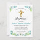 Celebre o Batismo do seu filho com amigos e familiares convidando-os com este cartão postal de convite para o Batismo floral, de ouro elegante e azul lacrimogêneo. Este design apresenta uma bela cruz dourada com uma armação floral azul contra um simples fundo branco. O fundo tem um fundo verde-claro bonito. Personalize o texto e a fonte ao seu gosto. Outras fontes e estilos disponíveis. Por favor, entre em contato conosco com seus pedidos especiais e teríamos todo o prazer em ajudá-lo.