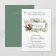 Gráficos encantadores com tema de floresta ou bosque em aquarela, incluindo folhagem verde, figuram nesta linda cruz católica, convite para Batismo, Batizado, Bautizo, Bautismo. Há várias opções e escolhas de papel para atender a todos os orçamentos, incluindo orçamentos baixos. Veja toda a coleção para ver os diferentes fundos de cores e gráficos diferentes, alguns dos quais apresentam animais da floresta, incluindo corujas, raposas, cervos, joaninhas, raposa. Campos de modelo de texto em ambos os lados para que você possa adicionar todos os detalhes da cerimônia, recepção, site, lista de presentes e muito mais. Este convite também pode ser usado para Primeira Comunhão e Confirmação, basta editar o texto conforme necessário.