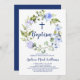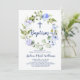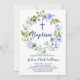 Barato de convites de batismo para bebês impressos. Este bonito design tem uma coroa de água floral com flores azuis pastel e verde. Personalize a design com os detalhes da festa Baptism do seu filho. O verso tem uma cor azul ou você pode usar o espaço para adicionar texto e fotos adicionais. Clique em Personalizar para escolher qualquer cor de fundo e editar as fontes de texto e as cores para criar um convite Baptism exclusivo para o seu bebê.