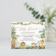 Este elegante convite da nossa coleção do Partido da Selva apresenta bébés bonitos com vegetação tropical, aliados a uma fonte moderna de caligrafia. Perfeito para uma selva ou festa segura.