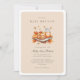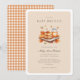 Convite para Baby Brunch, de Cores Aquáticas Modernas - Nosso convite elegante para BABY BRUNCH apresenta uma pilha deliciosa de panquecas de cor d'água com manteiga, xarope com uma vela de queda monograma e abóboras. O convite também apresenta belas escrituras e tipografia moderna. A parte de trás do convite é coordenar gingham.
