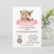 Fox Chá de fraldas Baby Girl Invitation - Uma fox adorável e aconchegante é apresentada com uma faixa de fita rosa. Todo texto é completamente personalizável!