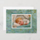 Doce bebê é levado para um leito macio de aqua e creme. O antigo design cromolitógrafo pode anunciar a chegada de seu novo membro da família. Está pronto para o seu toque pessoal.