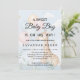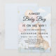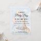 Convite de chá de bebê menino encantador com uma girafa aquarela simpática segurando balões pastéis em um fundo azul claro suave. Nuvens brancas fofas, estrelas amarelas e folhagens verdes sutis enquadram o design, deixando amplo espaço para detalhes personalizados do evento. Este convite equilibrado e alegre é perfeito para chá de bebê modernos, misturando elementos aquarela lúdicos com um estilo elegante e convidativo.