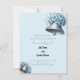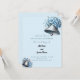 Este encantador convite para o casamento é uma visão de serenidade e romance, tons azuis suaves que estabelecem um humor tranquilo. No coração da design está uma sineta de prata cintilante, simbolizando a celebração e união, gentilmente adornada com grupos de delicados híbridos azuis. A sua beleza natural melhora o charme do convite, acrescentando profundidade e um toque floral que é eterno e alegre. Não esmagadora, mas sofisticada com espaço para adicionar seus detalhes de casamento, conforme desejado.