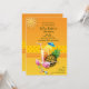 Um fundo amarelo e laranja ensolarado contém uma bebida de fruta tropical, um abacaxi, óculos escuros e uma pulseira de contas. Um belo convite de verão para qualquer idade ou ocasião.O convite é fácil de personalizar com seu texto, fonte, cor da fonte e escolha de seis tipos de papel.