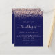 Um valor para o alternativo do ORÇAMENTO em tamanho menor de 4,5 x 5,6" de semirbrilho de 110 lbs, que é de espessura semelhante a um cartão postal (no entanto, não é adequado para uso como cartão postal). POR FAVOR, NOTE que existe UM por folha. Rosa de Orçamento Dourado de Marinho de Casamento Leve Convite. Uma borda de rosa dourado está em cada lado, e The Wedding Of em um script de escrita manual em branco suave, cor-de-rosa, com um fundo azul marinho. Personalize facilmente o texto para seus próprios detalhes. Você também pode alterar as cores do texto e do plano de fundo por meio da opção personalizar mais, se desejar.
