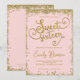 O brilho dourado e o rosa pincelado tornam este design perfeito para um 16º aniversário. Este convite é a forma perfeita de convidar amigos e família para a sua celebração de aniversário.