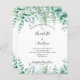 Um fundo branco com um eucalipto de cor aquosa verde e floresta, samambaias florestais. Personalize e adicione seus nomes e detalhes.