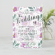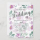 Elegante e moderno boho inspirou convite para o casamento floral. Apresentando flores de aquarela roxas e folhagem verde, repetindo sobre a superfície. Também inclui tipografia elegante com estilo escrito à mão.Muito fácil de personalizar para se adequar às suas informações pessoais.