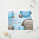 Este convite para o chá de fraldas tem um design moderno que usa bolhas de vidro azul e castanho. As bolhas se sobrepõem para um design lúdico que é cheio de profundidade. O texto é feito em castanhos e azuis para felicitar o design de fundo. Este é o convite perfeito e moderno do chá de fraldas.