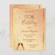 Elegante e glamouroso 50º (ou qualquer idade) convite de aniversário. Cor de fundo ombre ouro e rosa de chic com uma simples imagem de ouro fino. Decorado com bolhas festivas de champanhe e um par de óculos. Letras ouros escuras. O título: 50º Aniversário e o nome é escrito com scripts de estilo modernos, escritos à mão. Voltar: Dica: Se você não quiser que pareça um cartão postal, clique em personalizar, vá para o verso e remova o divisor e poste o carimbo.