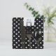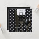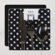 Convidado para festa com prata preta em preto com guardanapo branco de bolinhas. Pode ser usado para qualquer evento de festa.