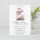Cogumelos de aquarela com caracóis e bolinhas. Esses convites para chuveiros de bebês são facilmente personalizados para seu evento simplesmente adicionando seus detalhes.