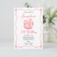Estes adoráveis convites de aniversário apresentam um bolo de aniversário retrô-rosa, cor-de-rosa, decorado com arcos de fita.