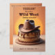 Vire-se para uma inesquecível celebração de aniversário de Wild West! Este convite rústico apresenta um incrível design de bolo de chapéu de vaqueiro perfeito para festas de temas ocidentais. Os tons castanhos quentes e o autêntico estilo ocidental criam a atmosfera perfeita para o seu dia especial. O texto personalizável permite que você adicione todos os detalhes do seu partido enquanto mantém essa sensação de fronteira autêntica. Perfeito para festas de aniversário de cowboy e cowboy, celebrações ocidentais, ou qualquer um que ama o espírito do Velho Oeste.