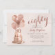 Este belo convite de aniversário de 80 com 2 camadas de bolo de ouro com rosa de 2 camadas com balões de ouro rosa, o número 80 em ouro rosa por blush seria perfeito para comemorar sua esposa, irmã, amiga, mãe, tia, avó. É tradicional e clássico enquanto é fresco, moderno e contemporâneo. As costas são uma adorável folha de ouro macia e rosa.