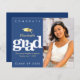 Anuncie ao mundo que o seu formando favorito alcançou o seu marco com este incrível, simples, moderno e personalizado convite para o anúncio de orçamento. Ícone de boné de folha de ouro preto, gráfico, branco e preto sobre fundo azul marinho. No lado direito, adicione uma foto da sua escolha. Personalize o texto personalizado com o nome, o nome da escola, a data e o ano da classe do seu formando. Na parte de trás, adicione seu bilhete pessoal, na próxima escola que frequentam, informações sobre festas, etc. Garantido para adicionar diversão na moda à sua ocasião especial! Basta substituir a foto de exemplo por uma de suas, digitar as informações de seu formando, personalizar a mensagem no verso e você pode personalizar facilmente este convite de lançamento de graduação de orçamento. Por favor, me mande mensagens com quaisquer perguntas ou solicitações.