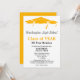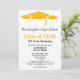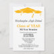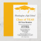 Este design de convite de reunião de classe minimalista de formato vertical apresenta texto preto e laranja num fundo branco com três bonés de formatura como limite superior. A cor traseira corresponde aos bonés de formatura da frente. Personalize suas informações, remova as informações ou edite usando a ferramenta design para selecionar uma cor de fonte, um tamanho e um estilo preferidos.