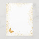 Um fundo branco decorado com borboletas de ouro e poeira falsa dourada. Personalize e o nome da noiva a ser e os detalhes da festa.